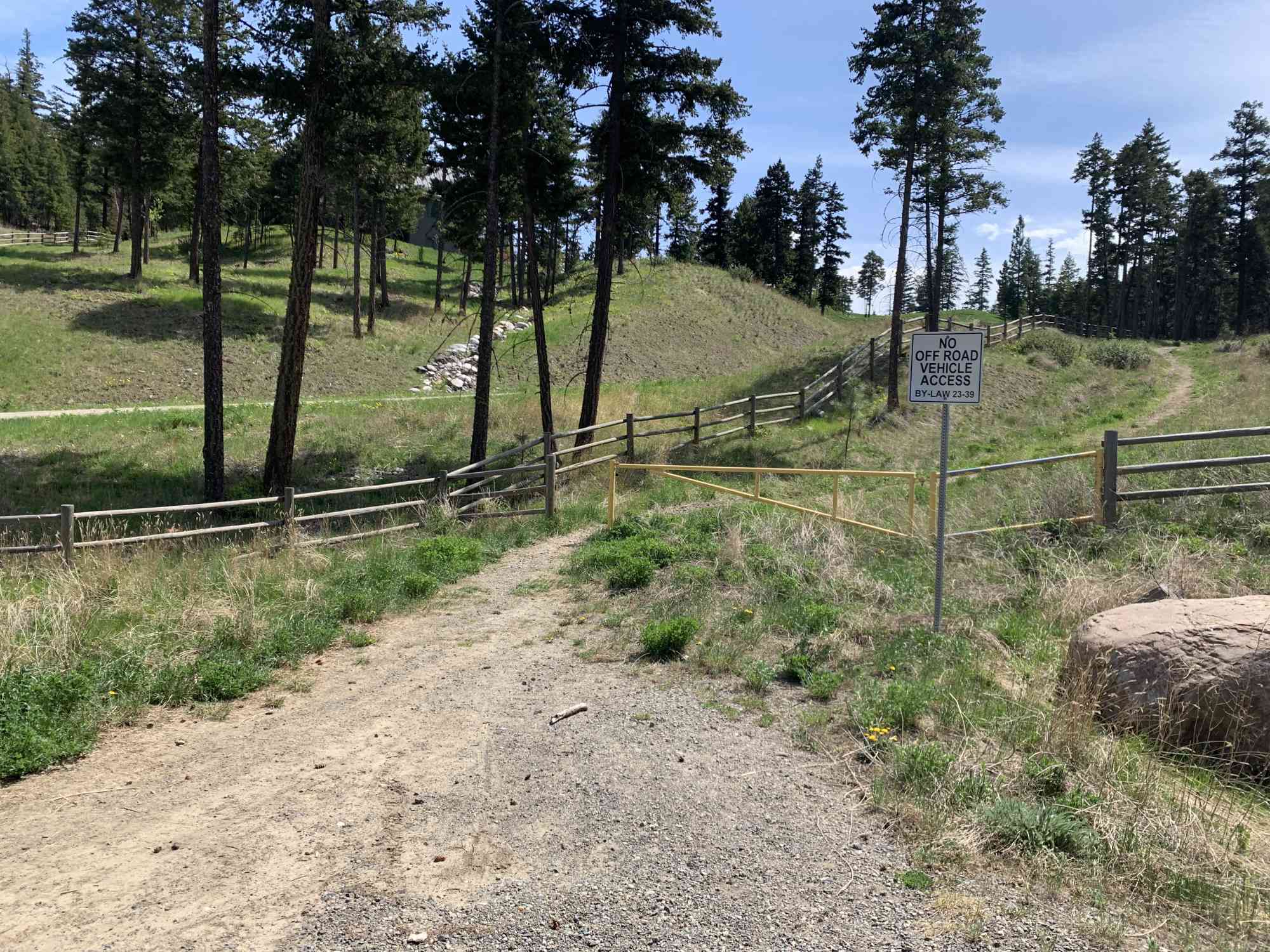 5) Head up trail at cul-de-sac on the left behind the sign that says no off-road vehicles with a yellow metal gate.